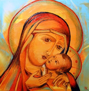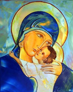 This icon was followed by several others. There is something beautiful and serene about recreating icons. These images were a bridge for the common man to experience the divine. I feel connected to the images and hope that I in some way can bring across just a glimpse of the original intent.